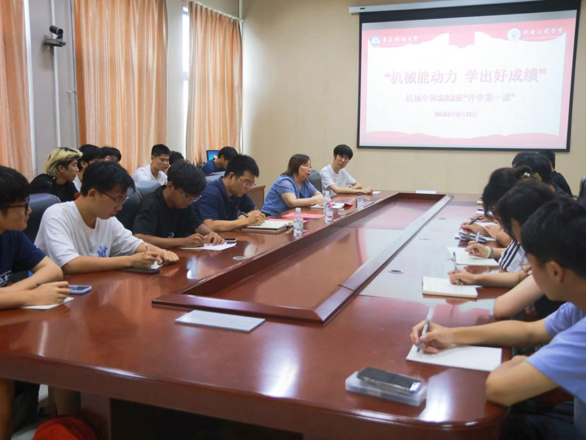 新学期,新起点,新征程。为落实学校关于各项开学工作的具体要求,帮助同学们尽快回归校园生活,明确学习目标,增强纪律意识和安全防范意识,提升班级凝聚力。9月11日,必赢线路检测3003no1机械中韩232班于在机电楼518会议室召开“机械能动力 学出好成绩”开学第一课主题班会。学院评建办主任付平、辅导员杜康,班级全体同学参加本次班会。