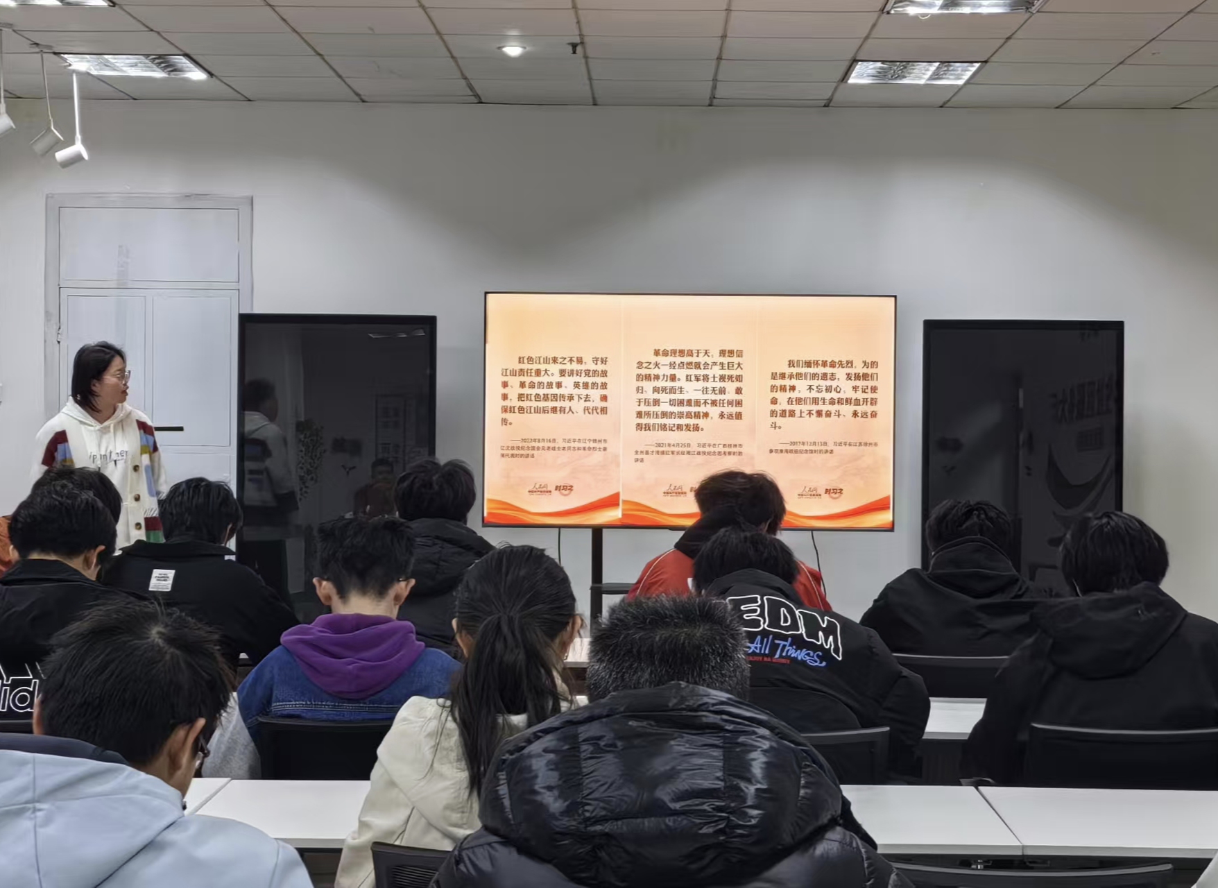 活动伊始,青马工程学员魏雅茹向同学们详细讲解了习近平总书记关于缅怀英烈、崇尚精神的重要指示精神,强调“红色江山来之不易,守好江山责任重大”。深刻阐述了革命英烈为国家独立、民族解放和人民幸福作出的卓越贡献,号召青年学子赓续英烈精神,勇担时代重任。