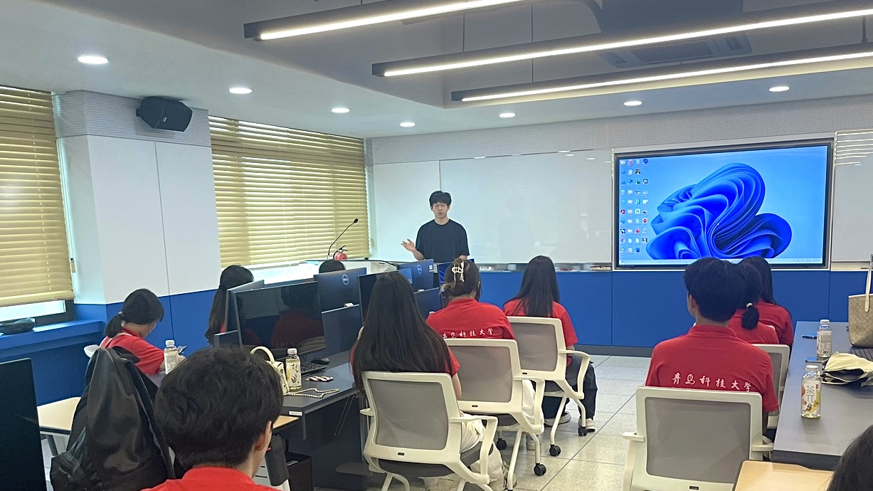 交流期间,实践团成员参与了韩语体验课,并进行了“文明互鉴青年行,青春共绘同心圆”主题宣讲。厉云哲同学首先从理论角度,系统阐释了讲好中国故事的深厚“底气源”——植根于中华民族多元一体格局的历史长卷、滋养于“和而不同”文化基因的精神共鸣、彰显于新时代各族人民共同团结奋斗的现实图景。而后,崔圣玮同学则立足青年实践,生动分享了在韩讲好中国故事的智慧:以真诚对话跨越文化隔阂,用生活细节传递人文温度,将单向“我要讲”升华为共创“一起聊”的双向对话。她强调,青年应以平等姿态和鲜活叙事,担当中华文明与世界沟通的桥梁,推动文明在真诚互鉴中共生共荣。两位同学的宣讲,充分彰显出理论基石与青年实践的交相辉映,深刻诠释了新时代青年在促进文明交流、铸牢中华民族共同体意识中的使命与担当,赢得了在场师生的高度认同。