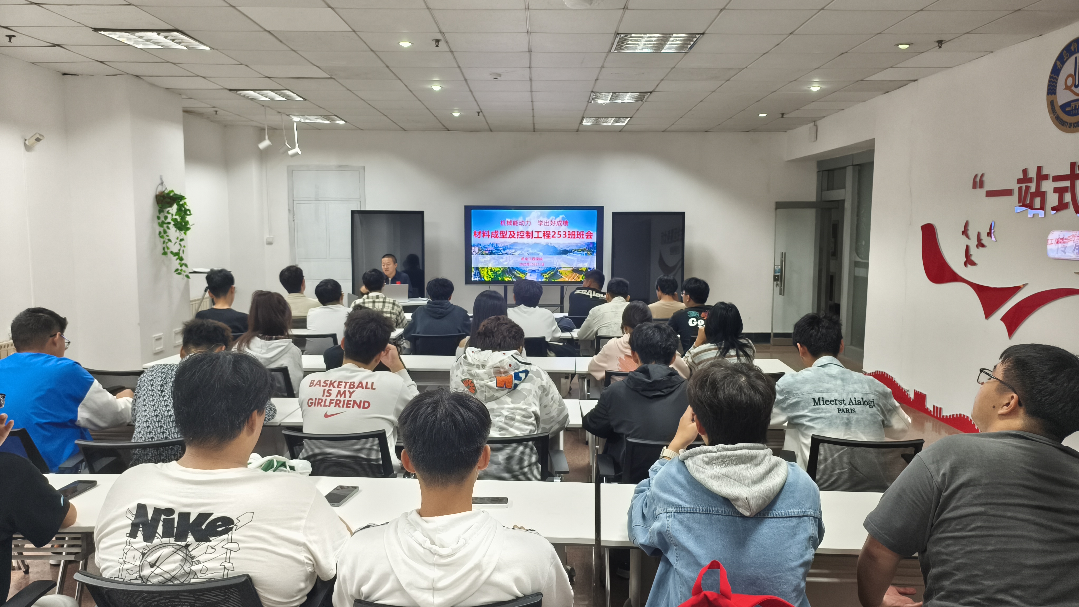 10月11日,必赢线路检测3003no1在学校“一站式”学生社区学业发展中心召开材料成型及控制工程253班新生入学教育示范主题班会,辅导员、班主任代表和全班同学观摩或参加班会。学院党委副书记、班主任杨小明主持班会。