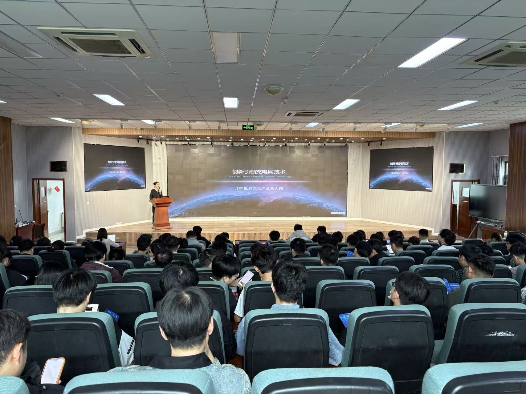 图为特来电校园宣讲会现场,同学们专注聆听企业相关情况介绍