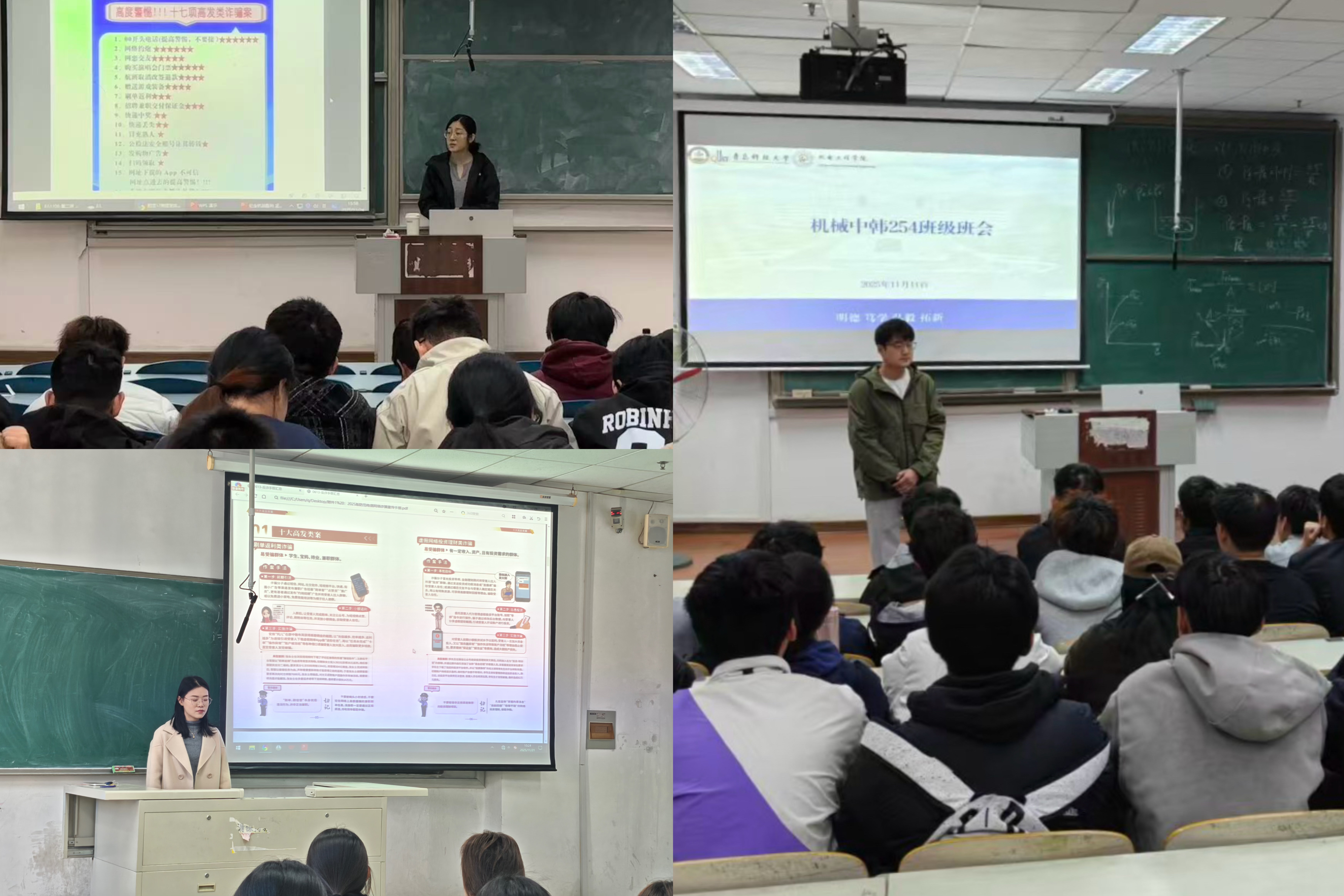近日,为切实增强学生安全防范意识,全力维护学生的人身、信息和财产安全,必赢线路检测3003no1持续深入开展“防范电信网络诈骗,共筑平安和谐校园”为主题的安全教育班会,深入学习必赢线路检测3003no1印发的《17项高发类诈骗案》学习资料和11月份班主任班会指南。主题班会由各班班主任主持,各班级全体学生参加。