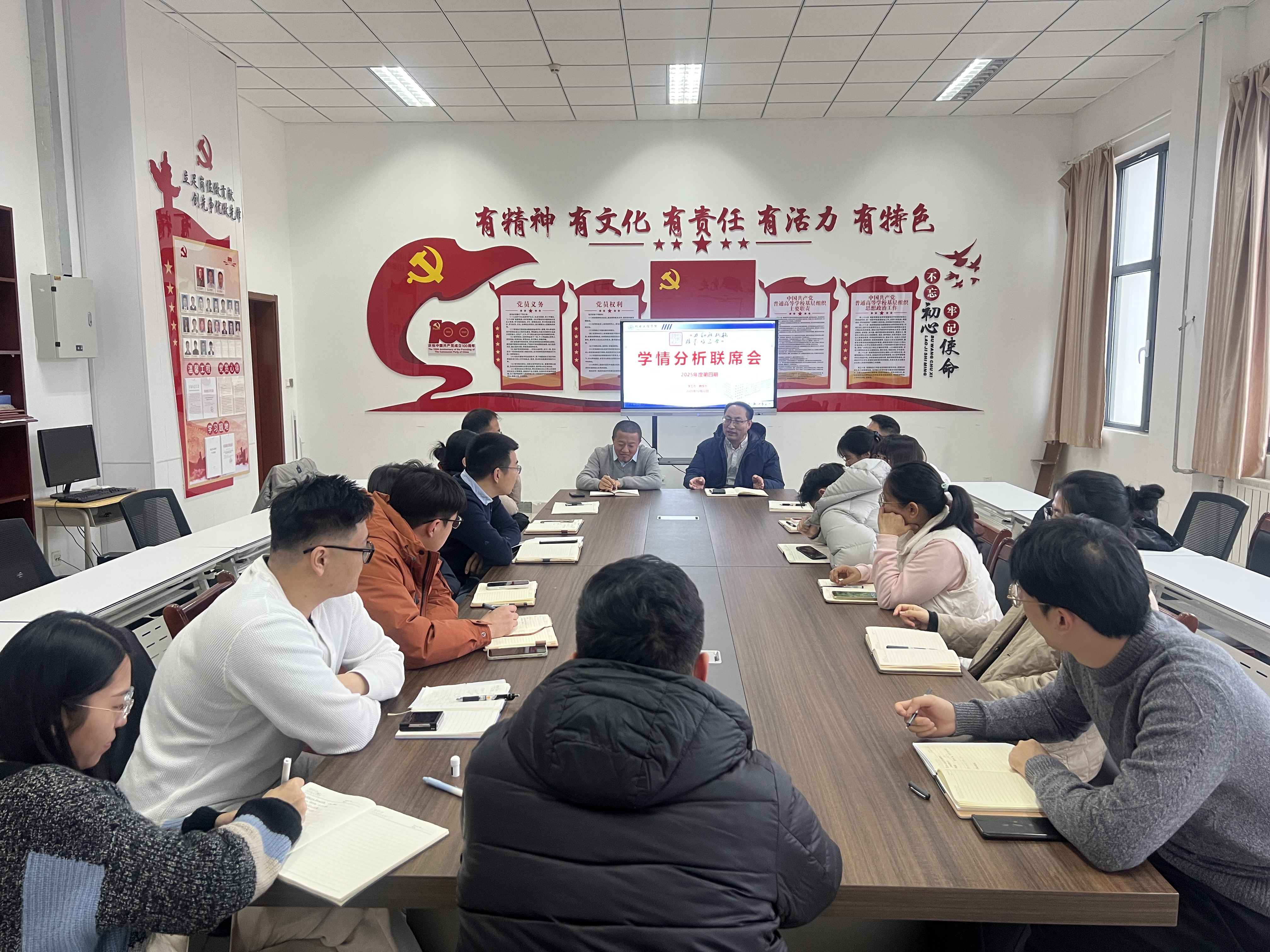 12月22日,必赢线路检测3003no1在党建活动室召开2025年度第四期学情分析联席会。学院党委副书记兼副院长杨小明、分管教学副院长李剑光,学工办全体辅导员、教学办公室全体教师参加会议。