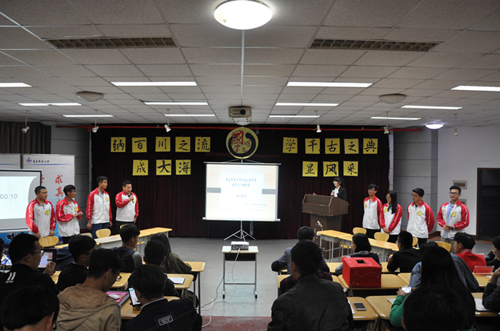 5月9日下午6:30,由机电学院学生会学习部举办的“国学达人”挑战赛决赛在南苑大活举行。由初赛角逐留下的八位精英选手展开了激烈的国学知识竞赛。机电学院分团委老师、学生会秘书长曲智强,分团委老师杨蕾,国学读书会会长边靖、副会长王帅及机电学院学生会主席、副主席等出席了本次大赛。