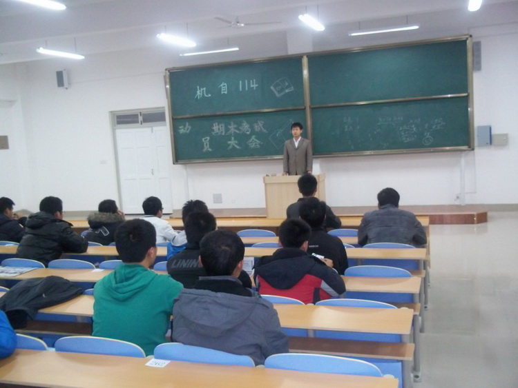 12月1日晚19:00,机电学院机自114班期末考试动员大会在高密校区M1教学楼213教室举行。辅导员老师秦洪庆,全班同学参加动员会。