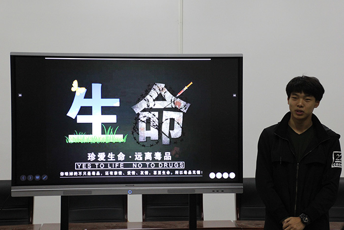 晚上,机电学院组织观看禁毒短片。学生会秘书处秘书刘璟辰通过众多禁毒事例向同学们介绍了本次活动的意义,希望同学们通过本次活动能够增加对毒品的认识并坚决的抵制毒品。短片介绍了K粉和摇头丸等毒品,并着重讲述毒品的危害及识别方法,短片中人物吸毒前后的身体变化和一步一步走上违法犯罪道路引发惨剧的过程,也给同学们带来心灵上的冲击,引起同学们对禁毒的深思。最后,短片提醒同学们在面对一些新奇的东西时不要贸然尝试,避免不法分子利用当代大学生的猎奇心理诱导其走上吸毒的不归路。