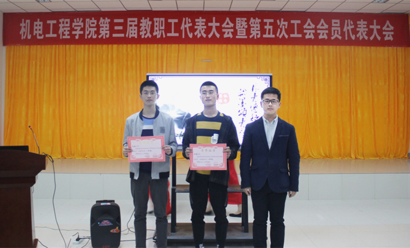 为了丰富广大学生的课余文化生活,展示当代大学生的风采,全面提高我院学子们的综合素质,由机电学院和传播学院合办的“丹青传诗意,翰墨颂青春”——献礼十九大主题书画展的颁奖典礼于3月30日晚19:00在机电大楼530举办。机电学院学生会秘书长曲智强老师、机电学院学生会主席李大志、副主席王笑东、传播学院学生会副主席郑紫薇等嘉宾出席了本次颁奖典礼。