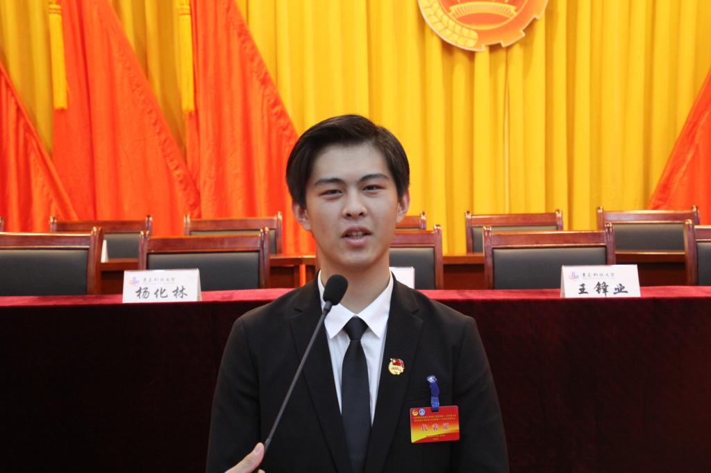 我是机电学院装控162班的张津侨,作为此次双代会的学生代表,我会正确表达广大学生的想法和意见,承担好责任并展现学生代表的良好精神风貌,为联系学生与学院的双代会尽自己最大的努力。最后,预祝大会圆满成功。