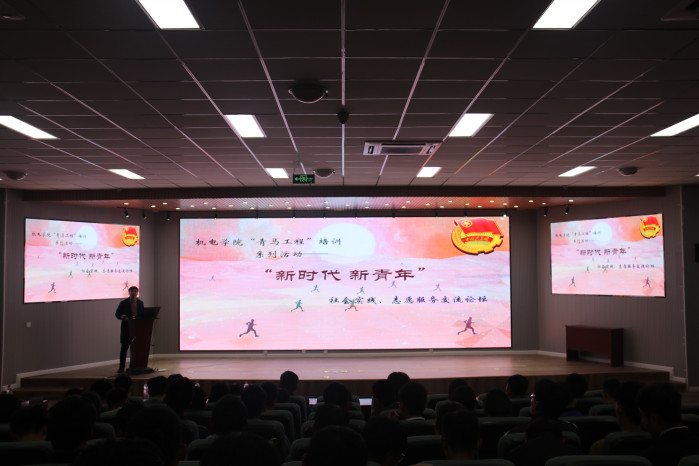为深入贯彻落实习近平新时代中国特色社会主义思想和党的十九大精神,持续深入推进机电学院青年马克思主义者培养工程,提高学生干部的理论素养、研究能力和实践水平。11月9日晚,机电学院在D3-530会议室举行2018年“青马工程”培训系列活动之“新时代·新青年”社会实践、志愿者服务交流论坛。本次活动邀请到了董海鸣、许昊、王敏(推免至哈尔滨工业大学读博)、秦健(推免至山东大学读研)四位同学,分别从社会实践、志愿服务、科技创新、学习方法等方面向大家作了经验交流,团学干部代表参加了此次活动,活动由分团委辅导员苗清主持。