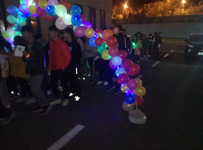 20:00点整,热情的快闪舞蹈拉开了荧光夜跑的序幕,随着荧光亮起,我院分团委李东阳老师、孙坤岩老师慷慨激昂的讲话点燃了同学们的热情,李东阳老师倡导要在实践中体会“地球一小时”的深刻内涵,作为科大学子我们应牢记社会使命,不忘初心,砥砺前行。之后,随着夜跑指令的发出,100多位参与者一起出发,他们头