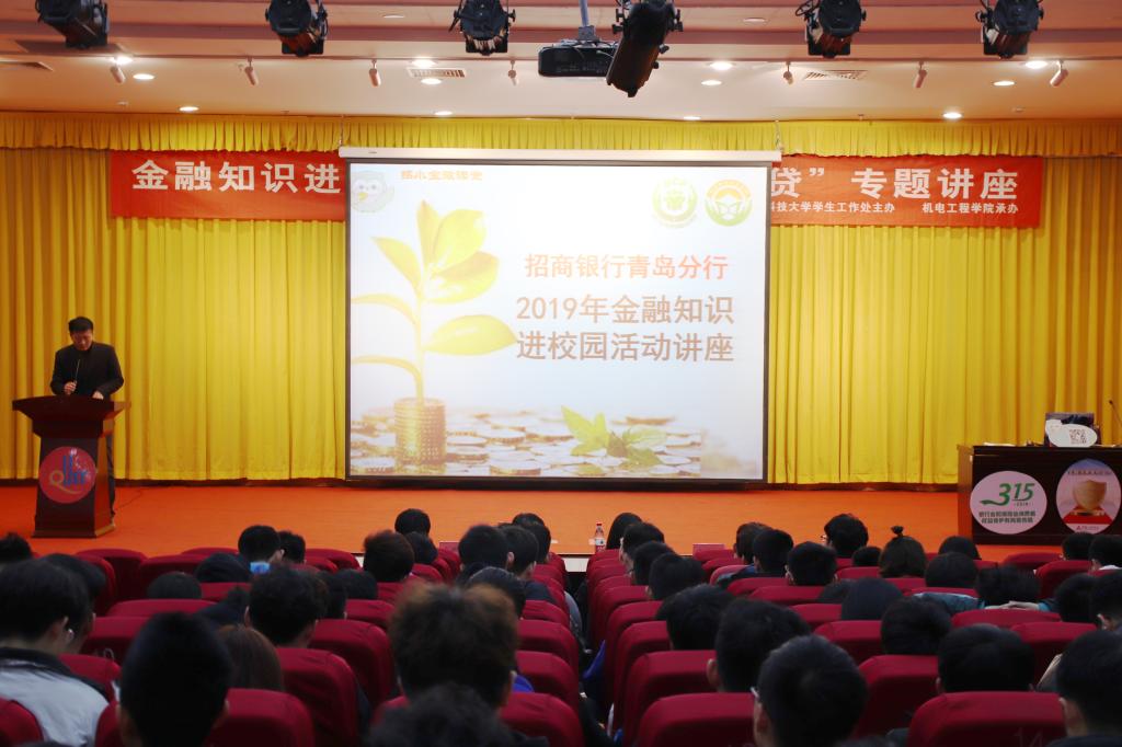 为提升广大学生的金融知识水平和金融风险防范意识,提高金融风险防范能力、识别能力和自我保护能力,远离各类非法金融活动,保障学生财产安全。为将安全教育前置,创建和谐平安校园,3月12日下午,我校成功举办“3·15金融知识进校园”活动,此次活动由机电学院承办,招商银行李沧支行行长助理周鑫、招商银行李沧支行主管马国强、机电学院分团委书记王作辉参加了活动,讲座由招商银行青岛分行消费者权益保护服务监督管理中心讲师王燕丽主讲,活动由机电学院李东阳老师主持。