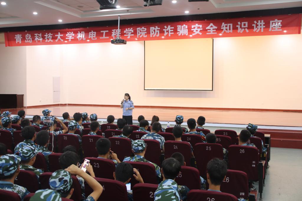 为提升大一新生的防诈骗安全意识,增强大学生群体的财产安全防范意识,9月12日上午,机电学院邀请青岛市公安局的宋笛警官在必赢线路检测3003no1第二报告厅利用现场讲解和直播的方式为机电学院全体新生进行防诈骗安全知识讲座。