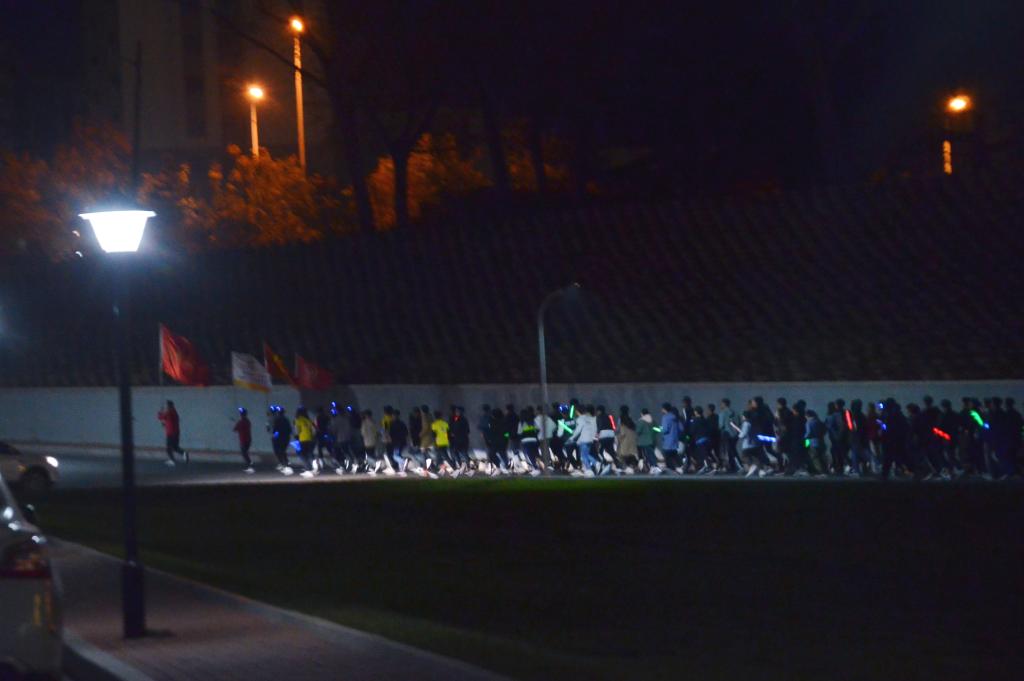 经过两天的宣传准备,公益酷跑活动正式拉开帷幕,每个参赛人员排队签到,领取自己的专属号码牌,在主持人的一声令下,他们整齐有序,身上点缀着炫丽的荧光,浩浩荡荡的向着前方跑去,最前方领跑的工作人员,举着机电学院院旗,扬帆、青尘、跑步爱好者协会队旗紧随其后,象征着一个富有爱心,拥有强健体魄,向着一个共同的目标大踏步地迈进。