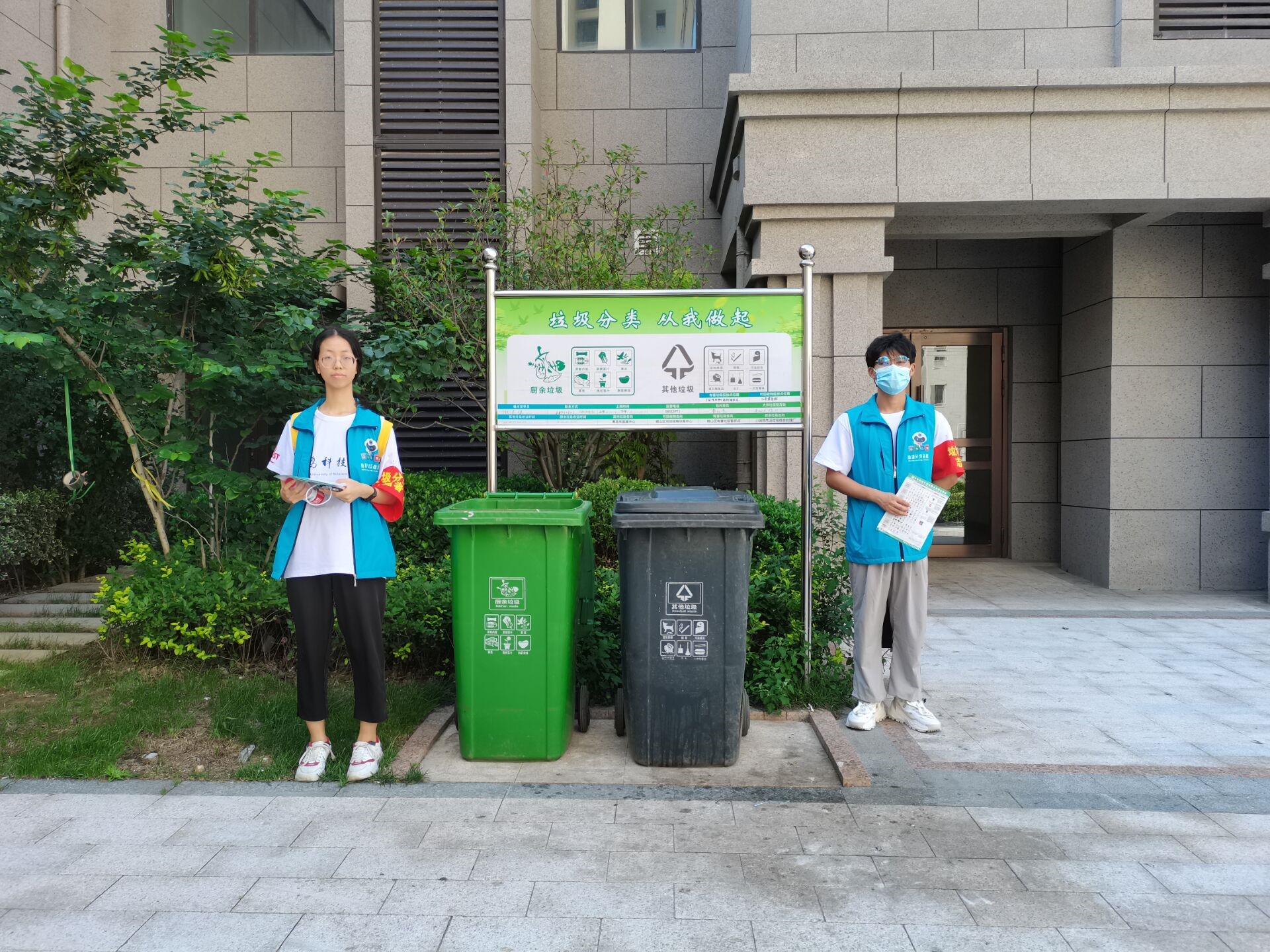 通过在展馆的参观学习,队员对垃圾分类知识有了比较系统完备的知识基础,为进一步推动青岛市的垃圾分类进程、提高社区居民的垃圾分类意识,2021年7月19日,必赢线路检测3003no1赴崂山区中韩街道“垃圾分类我先行”志愿服务团队员于多个社区内的垃圾桶旁对居民进行了垃圾分类驻桶引导。