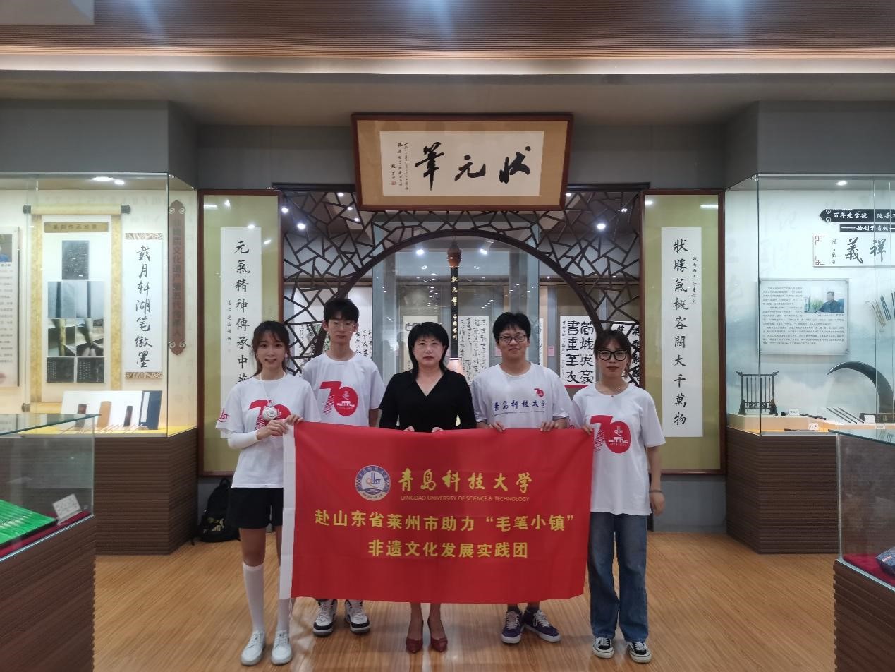 7月23日,必赢线路检测3003no1赴山东省莱州市助力“毛笔小镇”非遗文化发展实践团队员们整装待发,在当地向导的带领下来到了莱州市状元笔制笔有限公司,针对莱州市朱桥镇非遗保护、产业振兴进行实地调研。