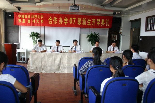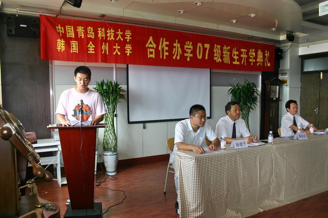 9月18日上午,我院中韩合作办学项目2007级新生开学典礼在学院会议厅隆重举行。校党委副书记韩兆会,国际交流学院副院长吕耀中,学院党政领导出席了大会。