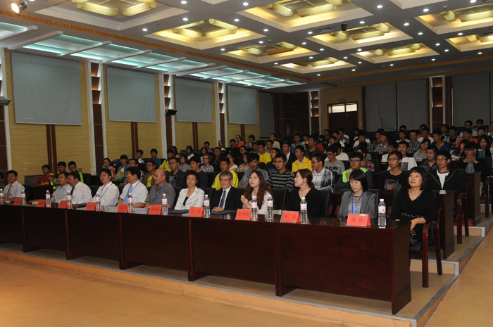 机电学院院长汪传生对2013级新生的到来表示祝贺和欢迎,向同学们介绍了学院的概况和中韩合作办学取得成绩,对同学们提出了要求和希望,希望同学们成为国际化交流的复合型人才。