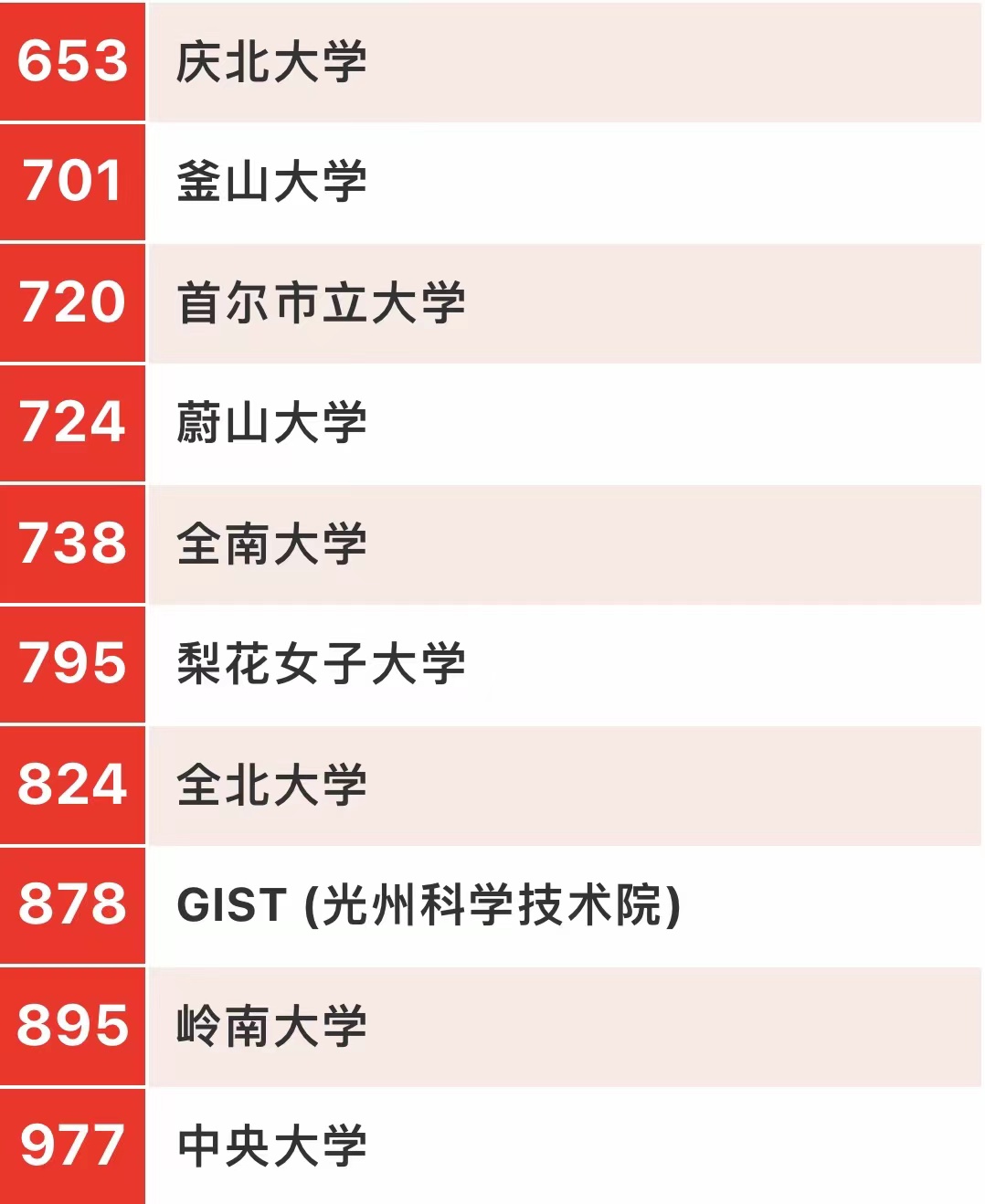下面我们来看一下韩国大学的排名情况。