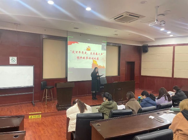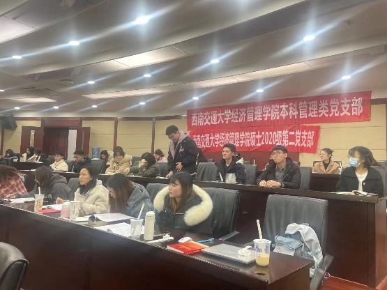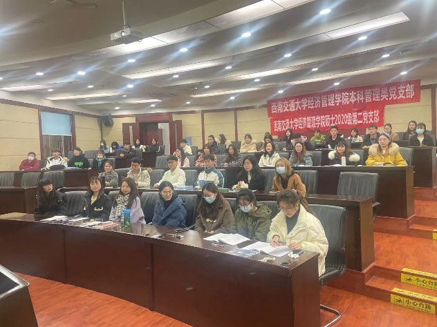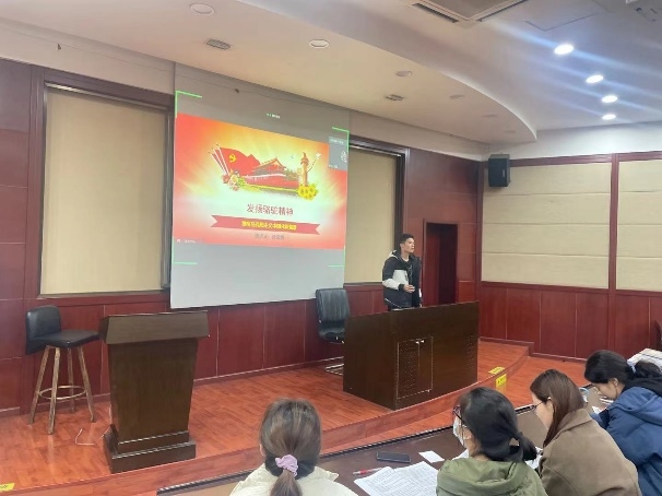 习近平总书记在党史学习教育动员大会上的讲话指出:“我们党的历史,就是一部不断推进马克思主义中国化的历史,就是一部不断推进理论创新、进行理论创造的历史。”在建党百年之际,回望总结我们党推进马克思主义中国化的历史进程,深刻把握马克思主义中国化百年历程的创新成果及基本经验,是继续推进马克思主义中国化,发展当代中国马克思主义、21世纪马克思主义的必然要求。因此,为了引导党支部同志们进一步学习马克思主义理论,深入理解马克思主义的精神实质和思想精髓,2021年12月16日下午,BB贝博艾弗森官方网站硕士2020级第二党支部联合本科管理类党支部在九里校区零号楼0224教室举办“庆百年党史,发青春之声”经典故事演讲比赛。本次演讲比赛由硕士2020级第二党支部官慧同志主持,到场老师有贾佳、苏扬以及张媛媛。