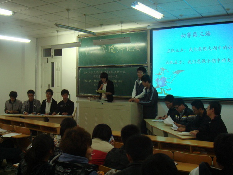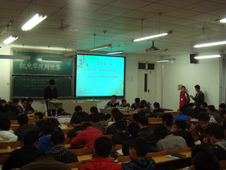 11月18日晚6:30,由机电学院学生会学习部主办的2011级班级辩论赛初赛第三场、第四场在高密校区2号教学楼101、601教室举行。